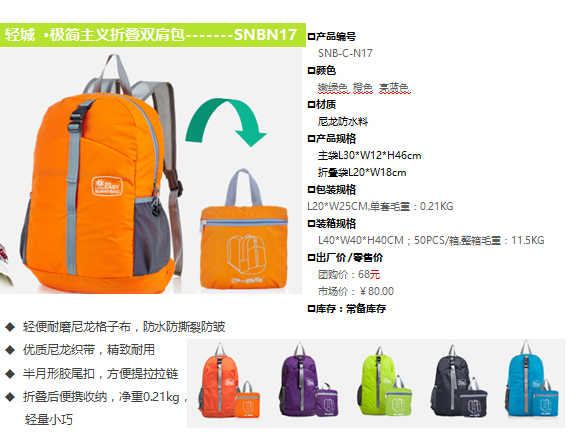 • 輕城 ·SNBN17極簡(jiǎn)主義折疊雙肩包